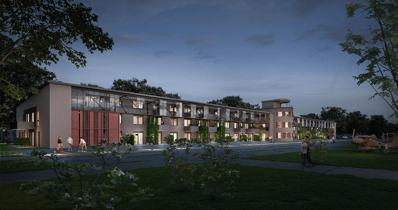 Einfliegerhalle Ostflügel mit 20 Wohnungen und drei Family Homes